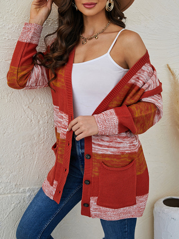 Women's Contrast Stripe Mid Length V-Neck Jacket